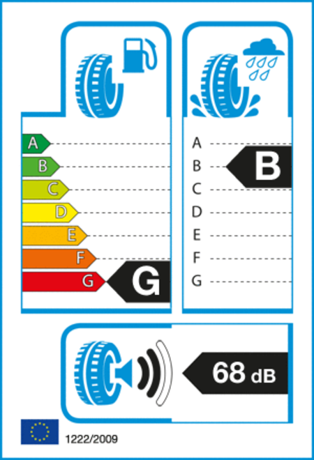 Klasy A (najlepsza) do G (najgorsza) oznaczają wpływ zastosowanych opon na emisję dwutlenku węgla oraz ilość zużywanego paliwa. Opona o klasę wyższa oznacza niższe zużycie paliwa o ok. 0,10 - 0,15 litra na 100 km (dla samochodu o średnim spalaniu 6,6 l/100km).